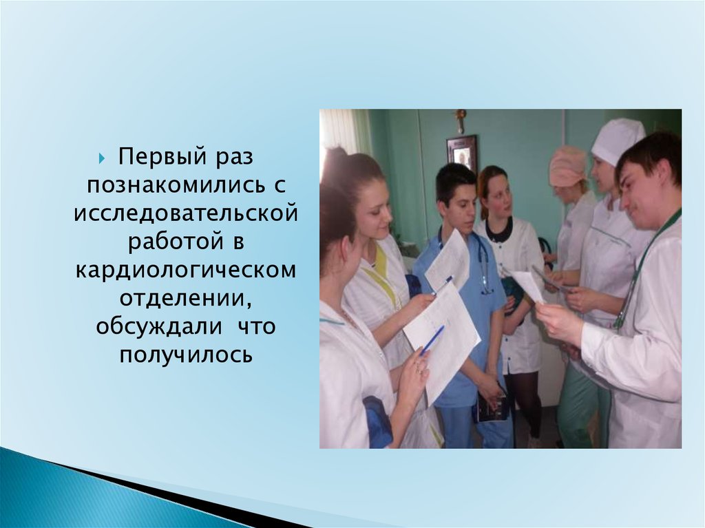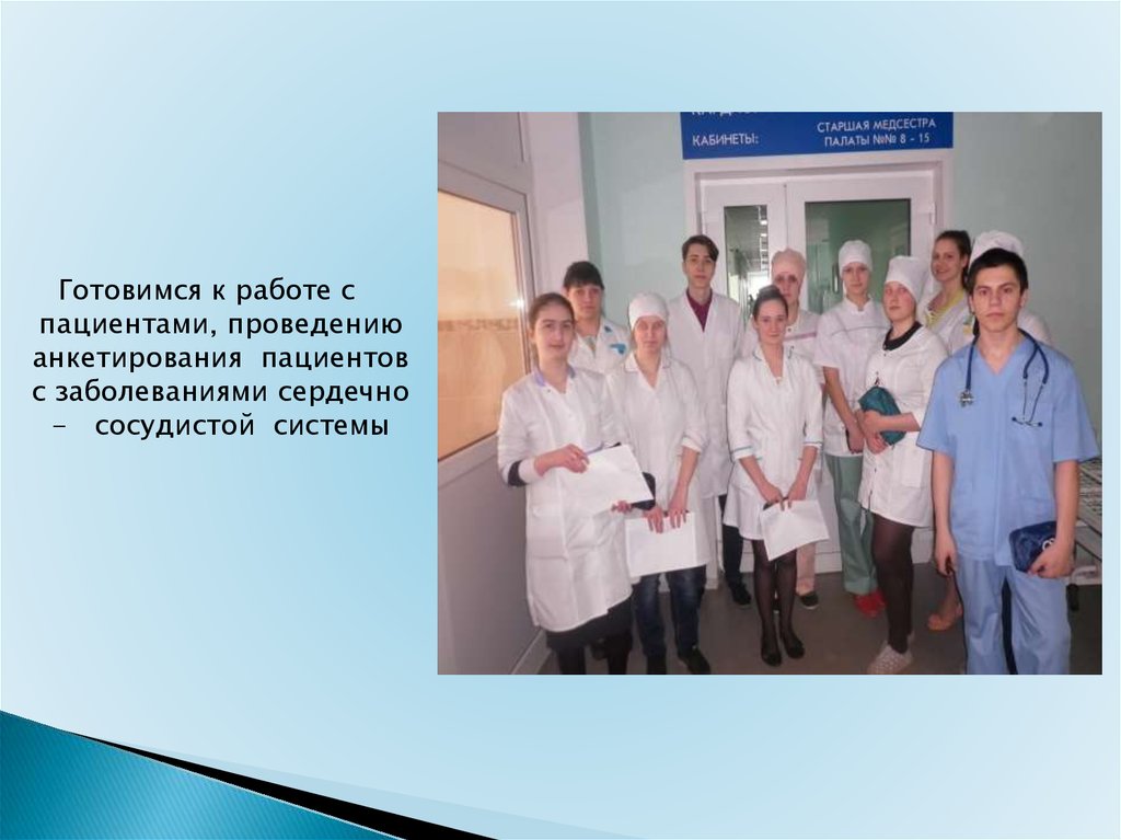 Студенты закрепили знания по " Сердечно-сосудистая система,". Работали вкардиологическом отделении , курировали пациентов (по анкете). , научились