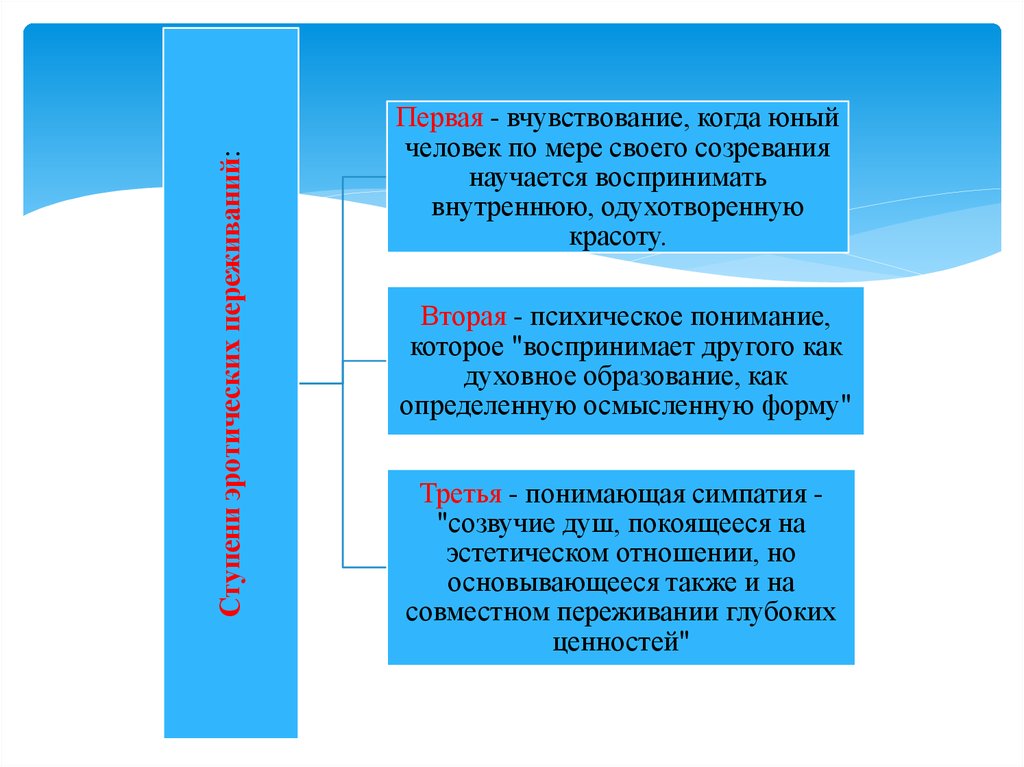 Ступени эротических переживаний:Первая - вчувствование, когда юный