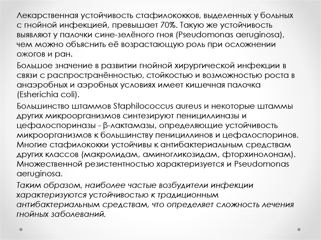 (стафилококковая, синегнойная, колибациллярная инфекция и др.).