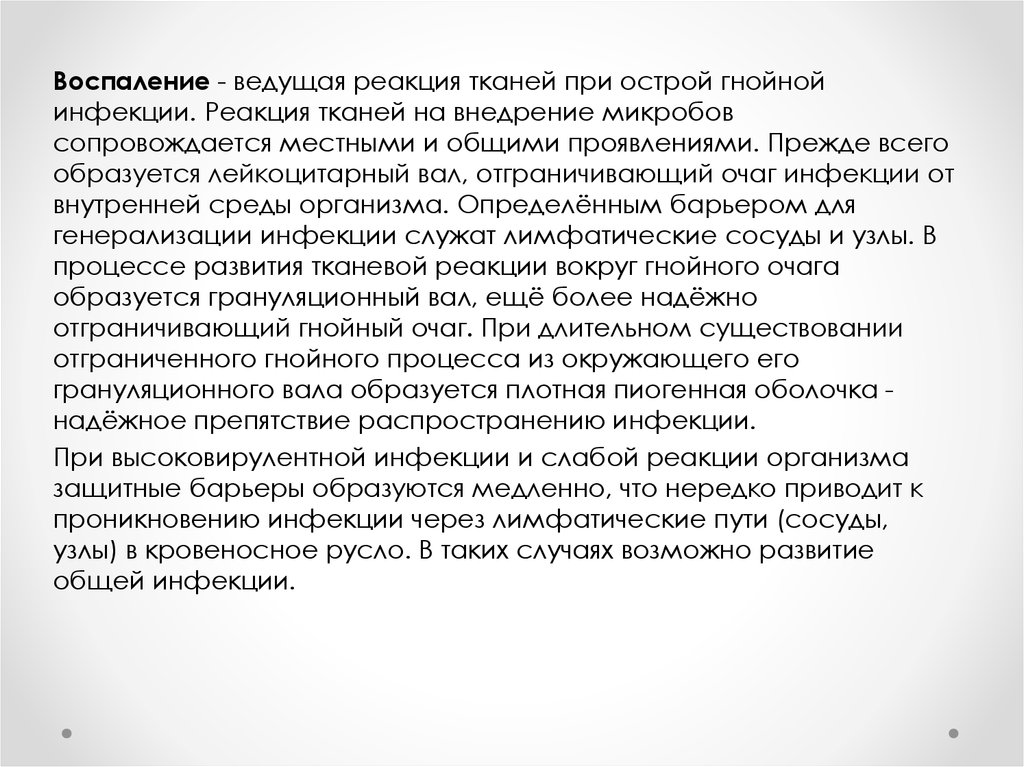 ПатогенезОстрая гнойная инфекция - острый воспалительный