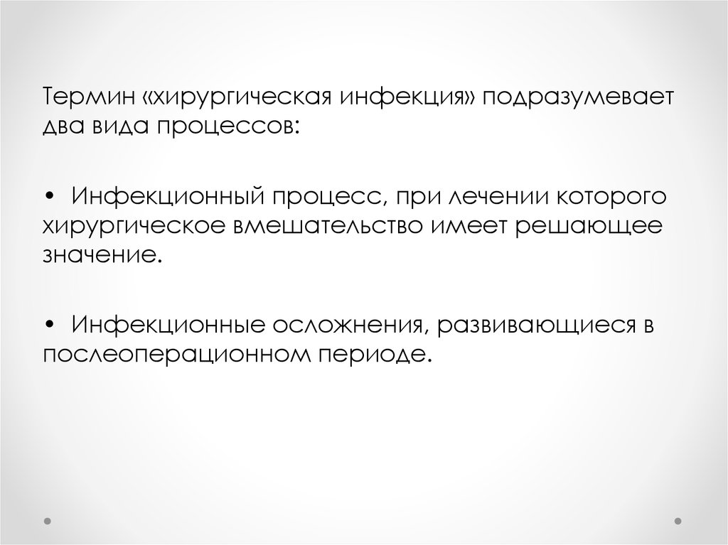 Термин «хирургическая инфекция» подразумеваетдва вида процессов: