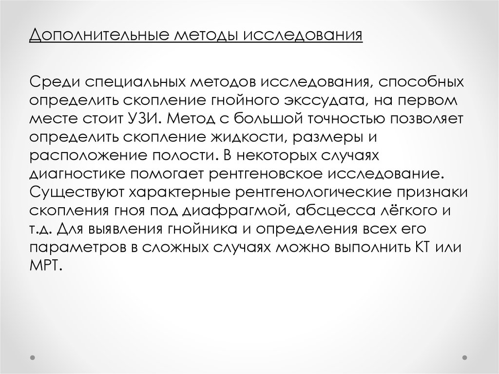 (симптомы флюктуации и размягчения), данные дополнительных методов