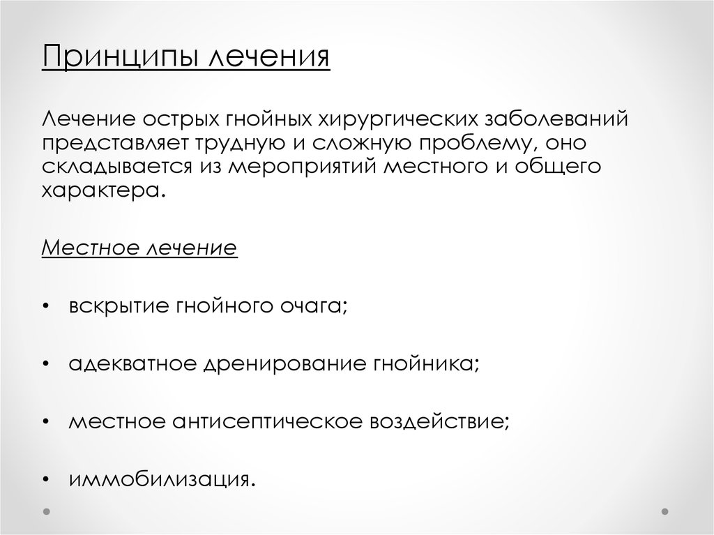 Принципы леченияЛечение острых гнойных хирургических заболеваний