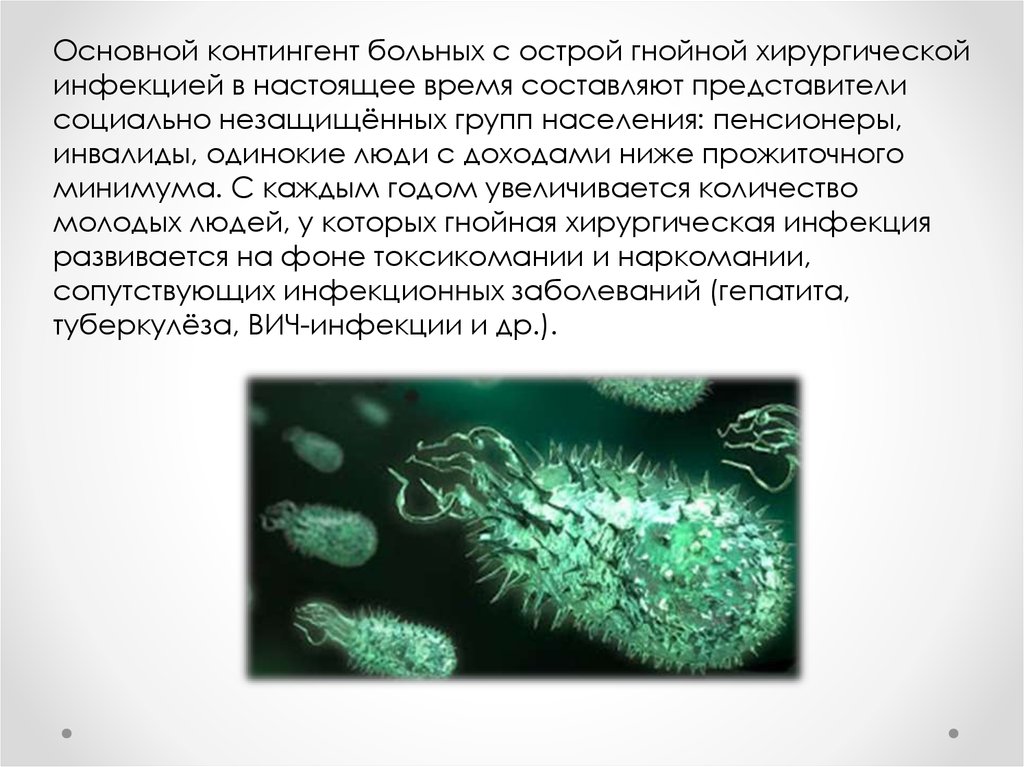 Основной контингент больных с острой гнойной хирургическойинфекцией в настоящее время составляют представители