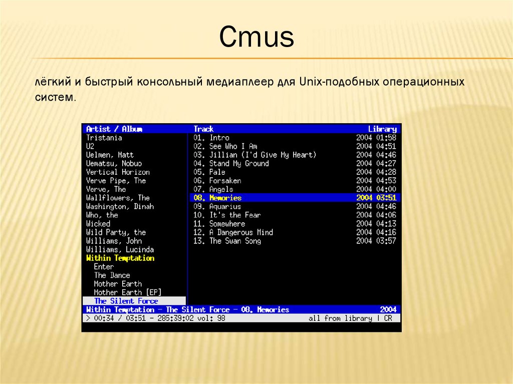 Cmusлёгкий и быстрый консольный медиаплеер для Unix-подобных операционных