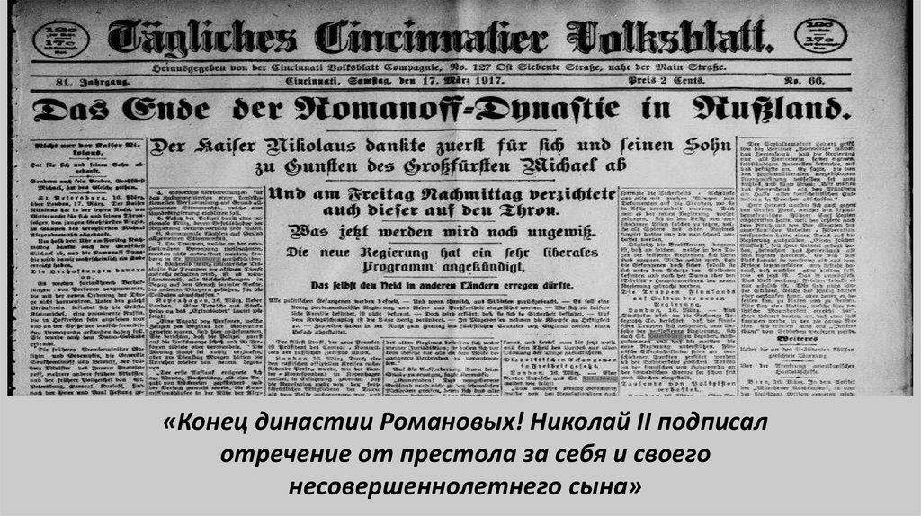 «Конец династии Романовых! Николай II подписалотречение от престола за себя и своего