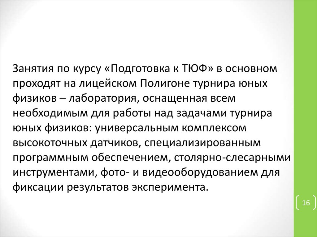 Занятия по курсу «Подготовка к ТЮФ» в основномпроходят на лицейском Полигоне турнира юных