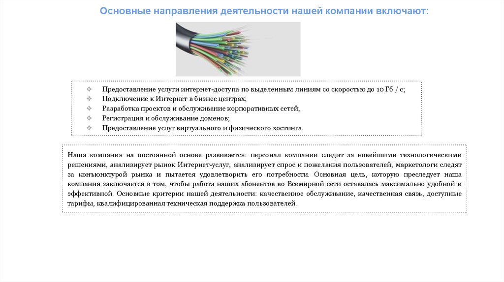 Предоставление услуги интернет-доступа по выделенным линиям со скоростью до 10 Гб / с;