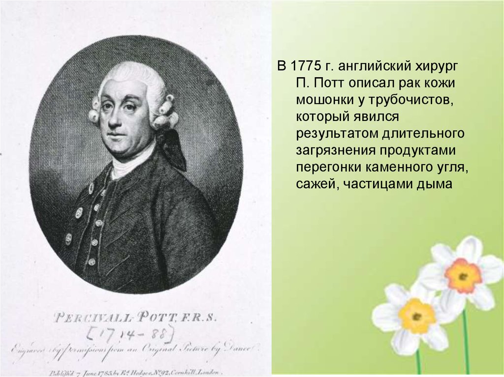В 1775 г. английский хирургП. Потт описал рак кожи