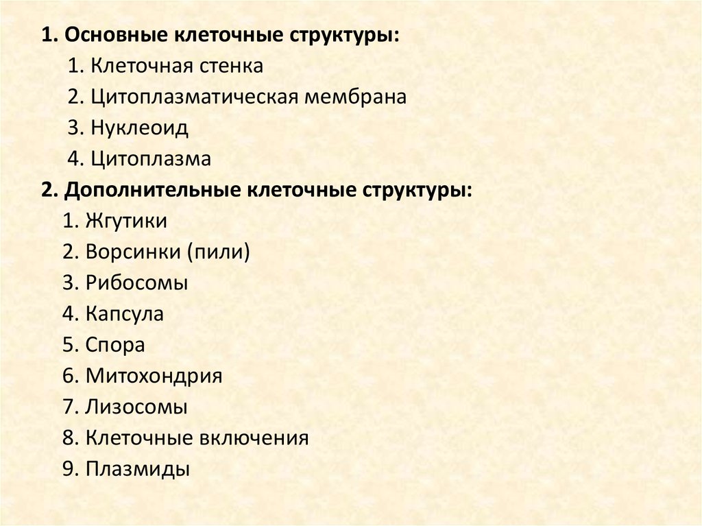 1. Основные клеточные структуры:1. Клеточная стенка