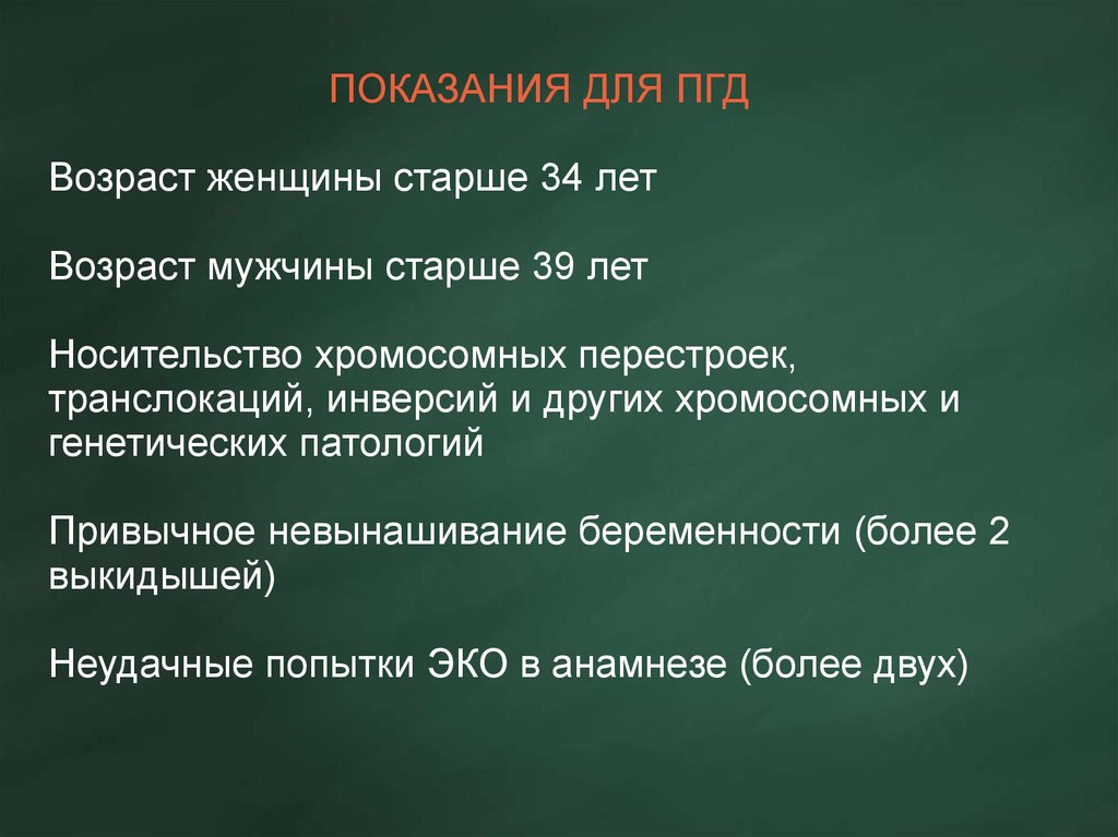 ПОКАЗАНИЯ ДЛЯ ПГДВозраст женщины старше 34 лет