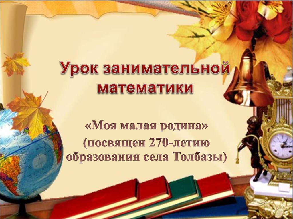 Урок занимательной математики. Моя малая родина (посвящен 270-летию образования села Толбазы)