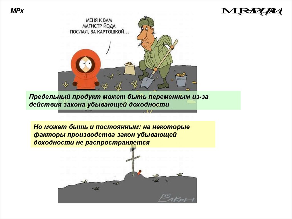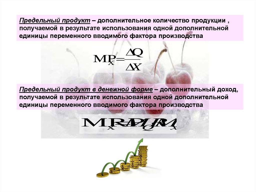 Предельный продукт – дополнительное количество продукции ,получаемой в результате использования одной дополнительной