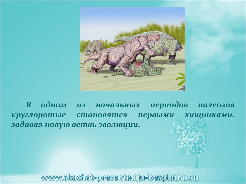В одном из начальных периодов палеозоякруглоротые становятся первыми хищниками,