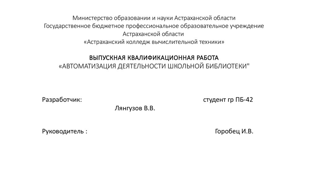 1. Министерство образовании и науки Астраханской области Государственное бюджетное профессиональное образовательное учреждение Астраханс