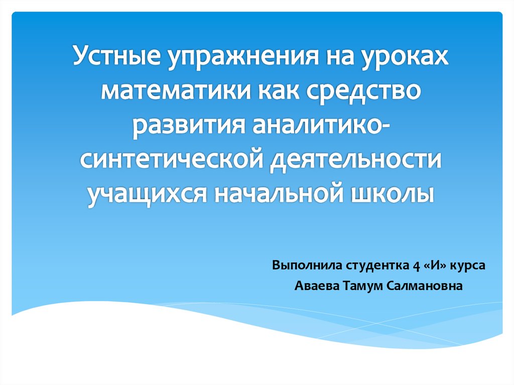 1. Устные упражнения на уроках математики как средство развития аналитико-синтетической деятельности учащихся начальной школы