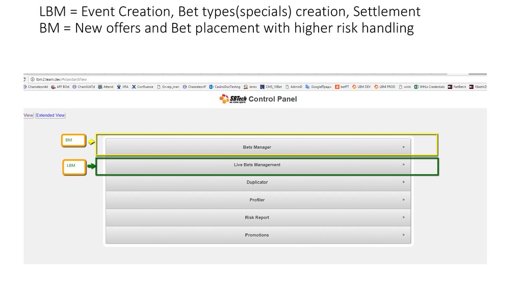 3. LBM = Event Creation, Bet types(specials) creation, Settlement BM = New offers and Bet placement with higher risk handling
