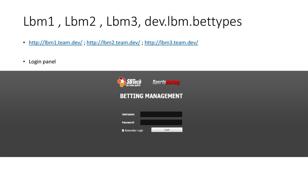 • http://lbm1.team.dev/ ; http://lbm2.team.dev/ ; http://lbm3.team.dev/• Login panel