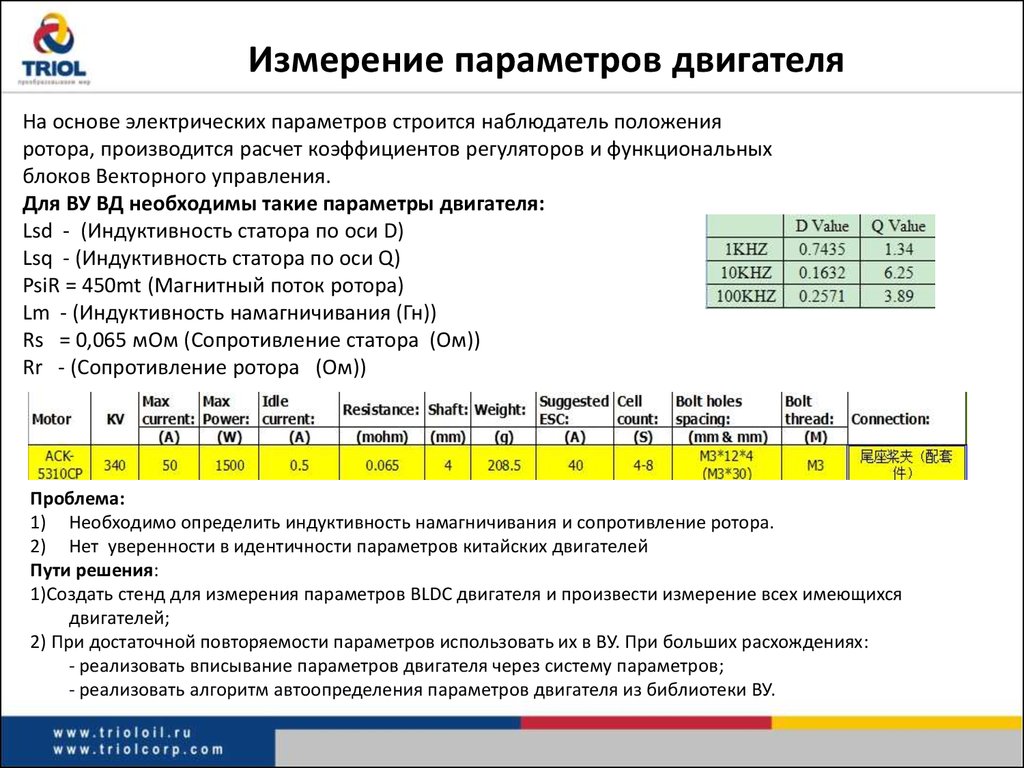 - реализовать алгоритм автоопределения параметров двигателя из библиотеки ВУ.