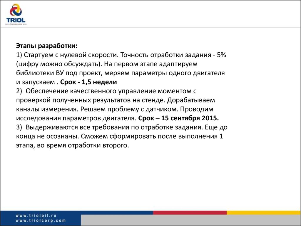 Этапы разработки:1) Стартуем с нулевой скорости. Точность отработки задания - 5%