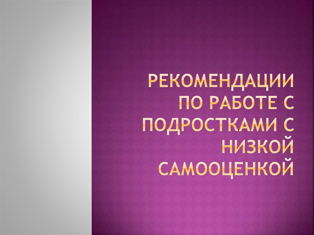 1. Рекомендации по работе с подростками с низкой самооценкой