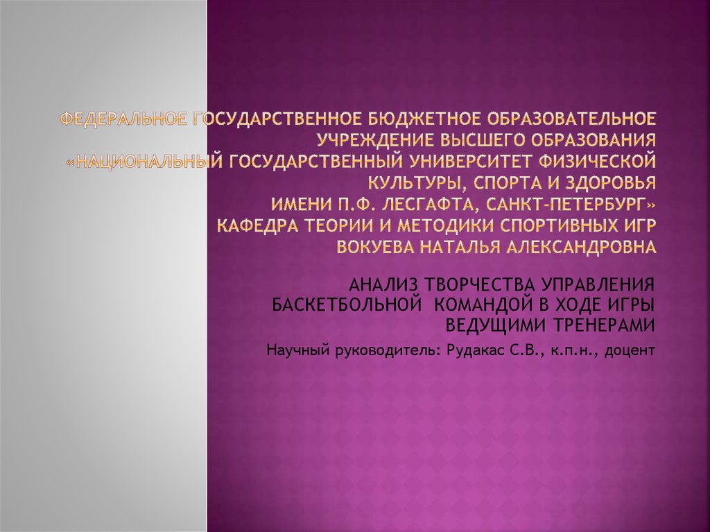 Научный руководитель: Рудакас С.В., к.п.н., доцент