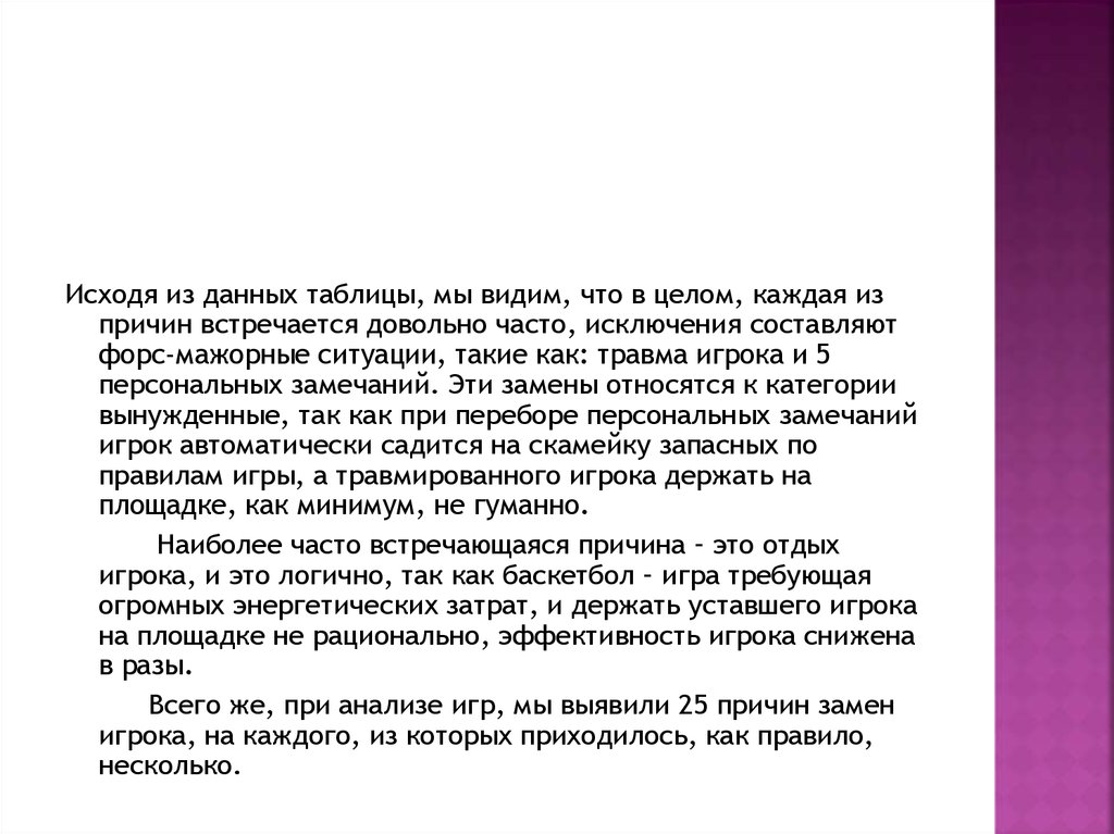 Всего же, при анализе игр, мы выявили 25 причин замен