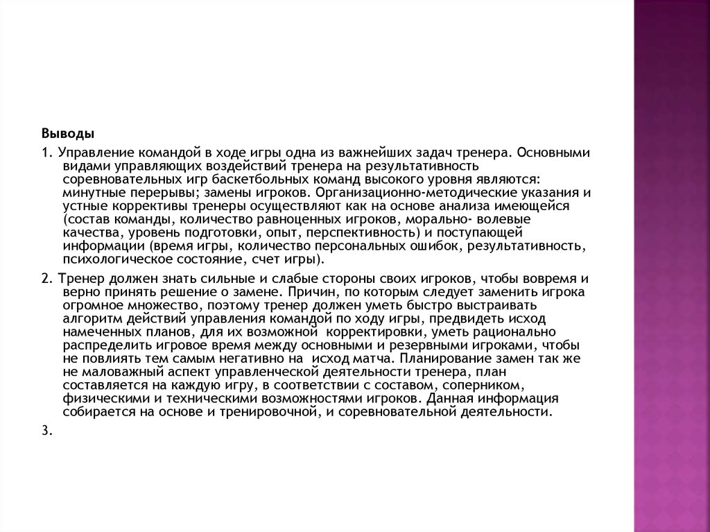 Выводы1. Управление командой в ходе игры одна из важнейших задач тренера. Основными
