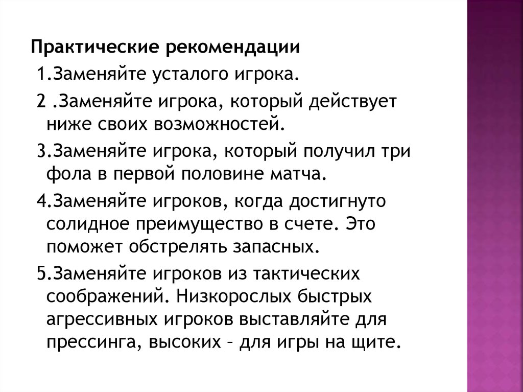верно принять решение о замене. Причин, по которым следует заменить игрока