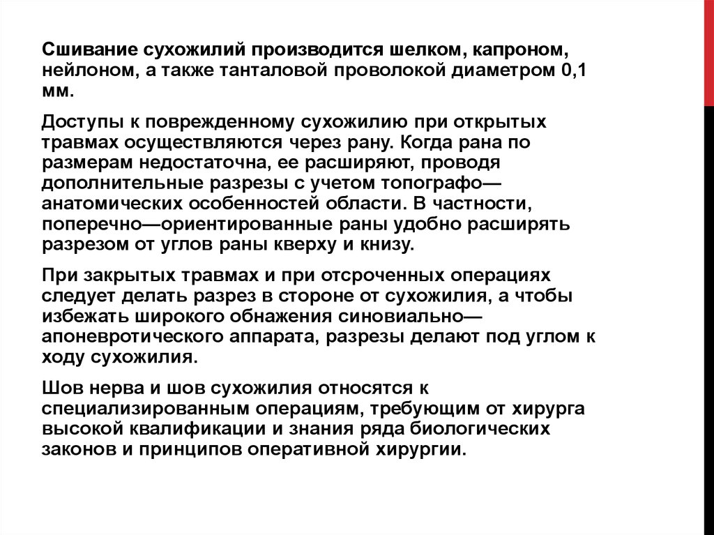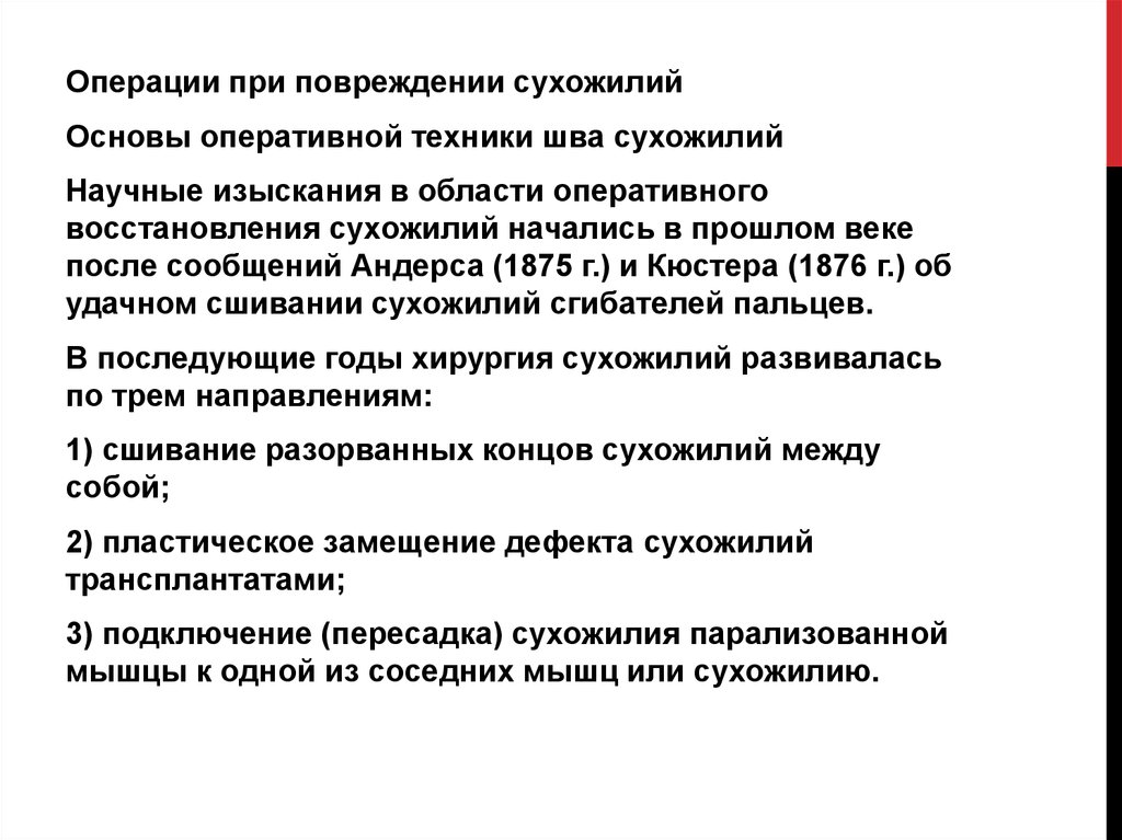 Операции при повреждении сухожилийОсновы оперативной техники шва сухожилий