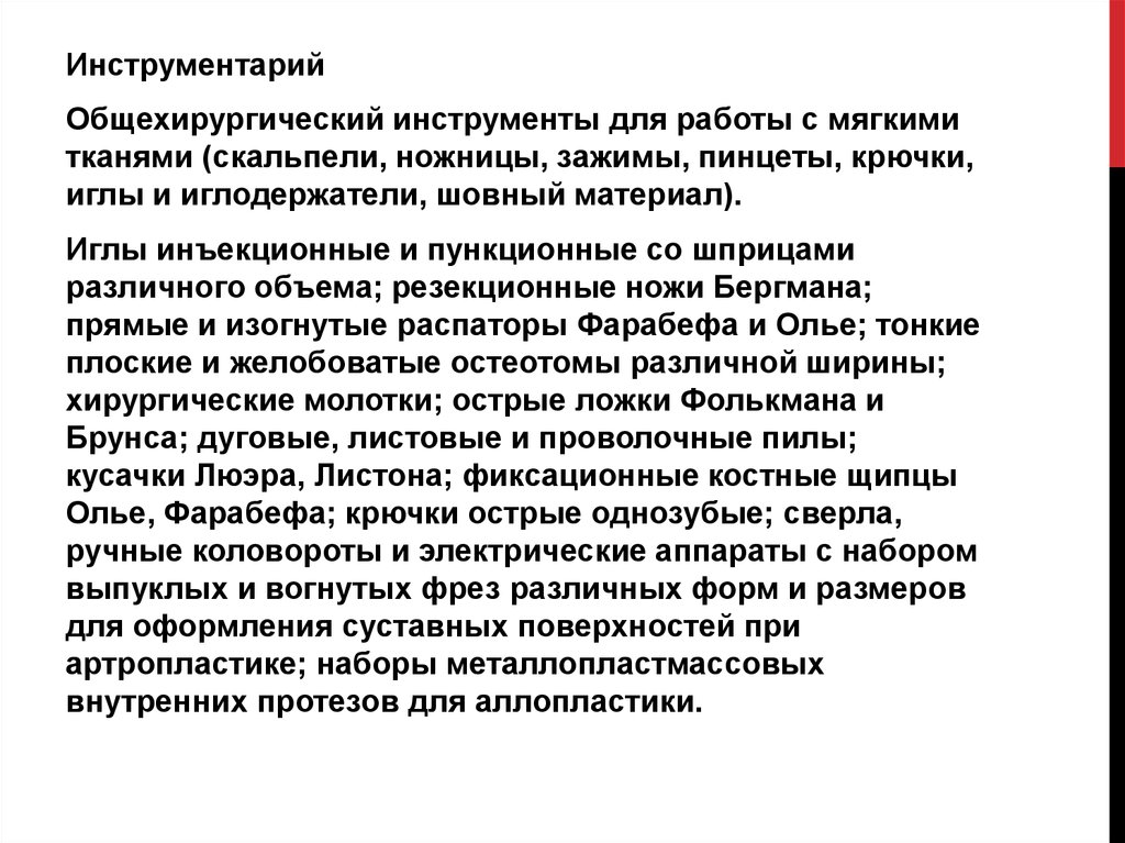 Кроме общехирургического применяют следующиеинструменты: резекционный нож Бергмана, прямые и