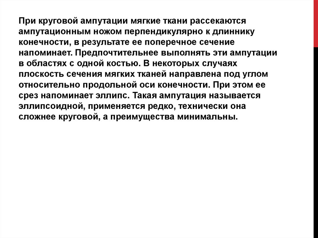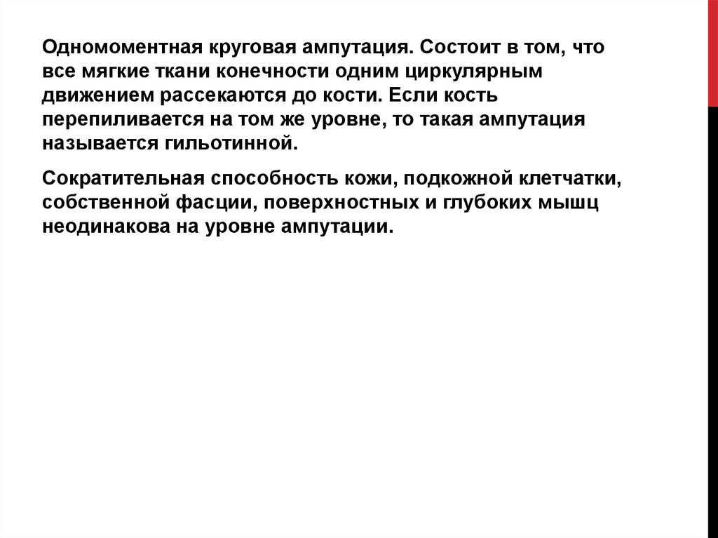 Одномоментная круговая ампутация. Состоит в том, чтовсе мягкие ткани конечности одним циркулярным