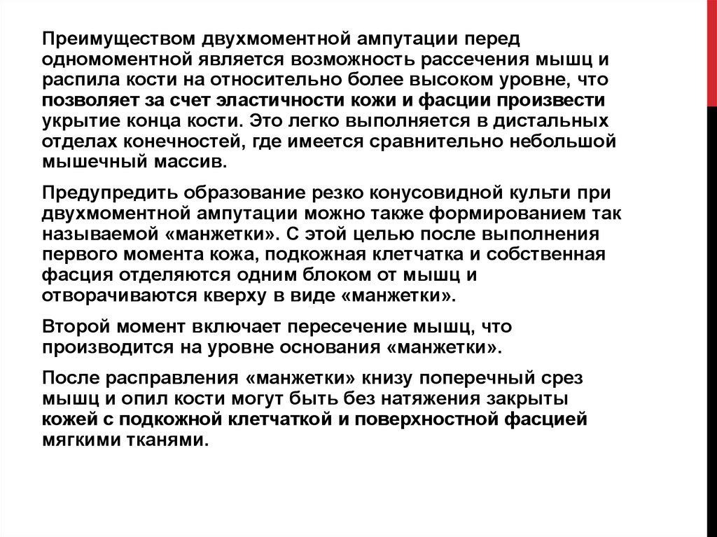 Двухмоментная круговая ампутация. Особенностьютехники двухмоментной ампутации является