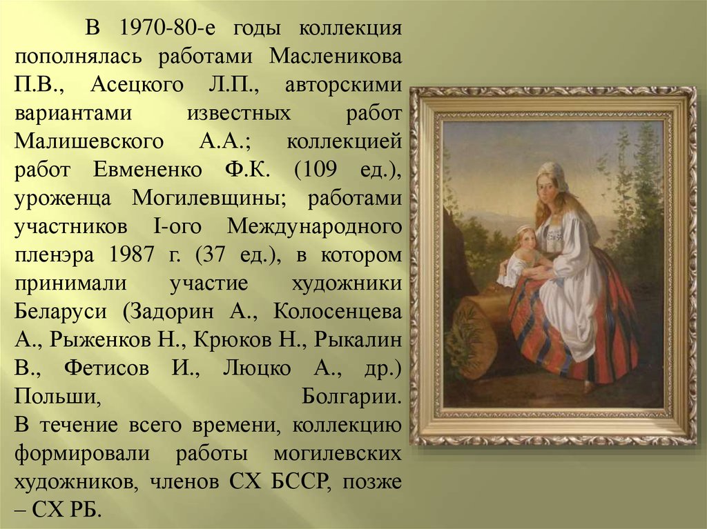 В 1970-80-е годы коллекцияпополнялась работами Масленикова