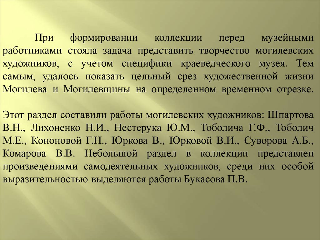 художников, с учетом специфики краеведческого музея. Тем