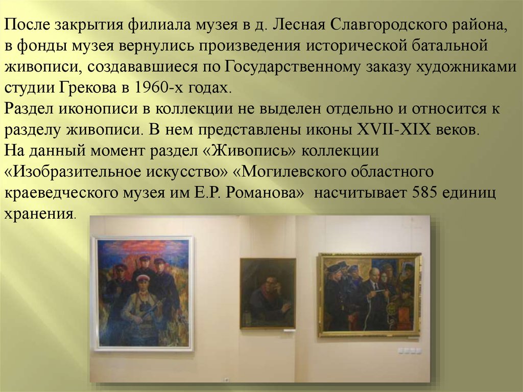 После закрытия филиала музея в д. Лесная Славгородского района,в фонды музея вернулись произведения исторической батальной