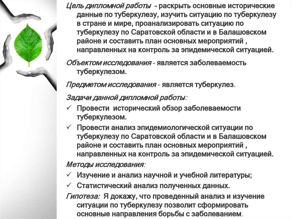 Цель дипломной работы - раскрыть основные историческиеданные по туберкулезу, изучить ситуацию по туберкулезу