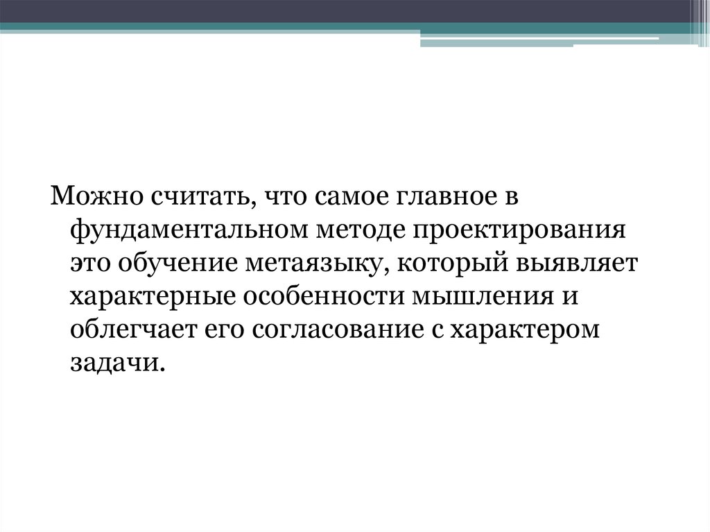 Можно считать, что самое главное вфундаментальном методе проектирования