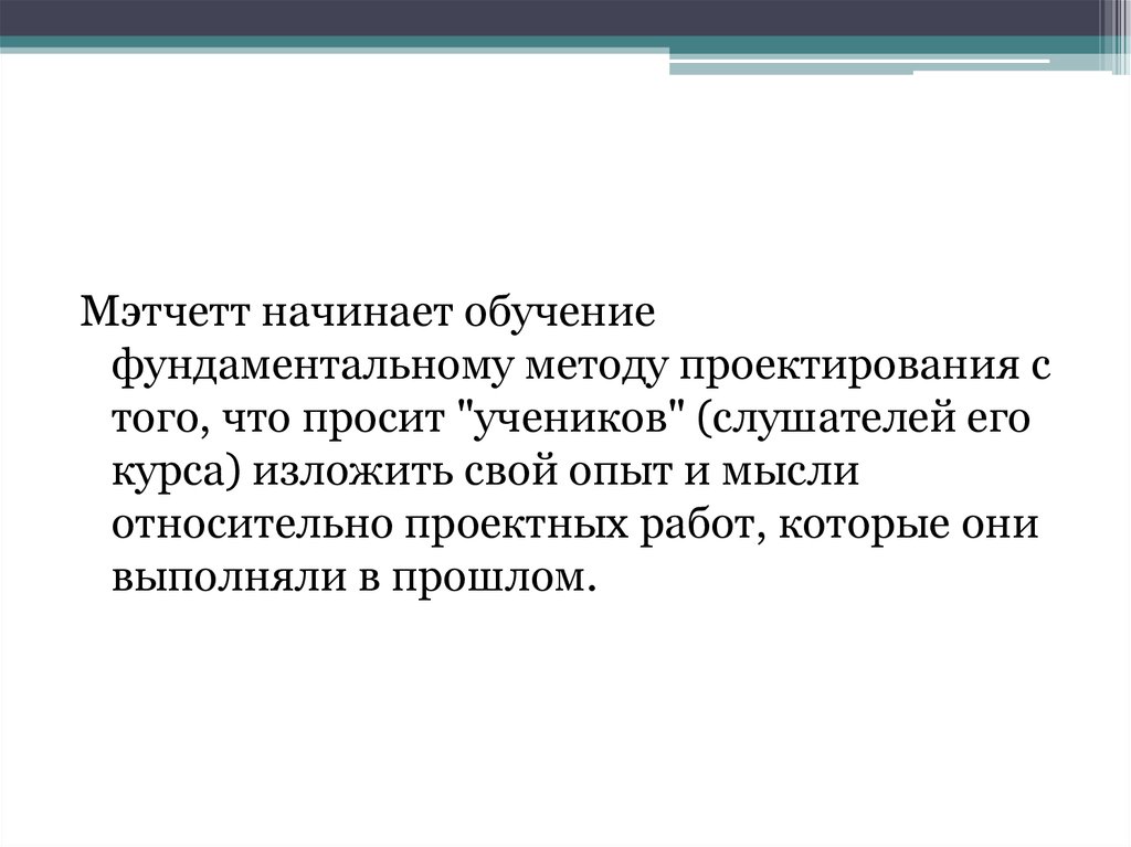 Мэтчетт начинает обучениефундаментальному методу проектирования с