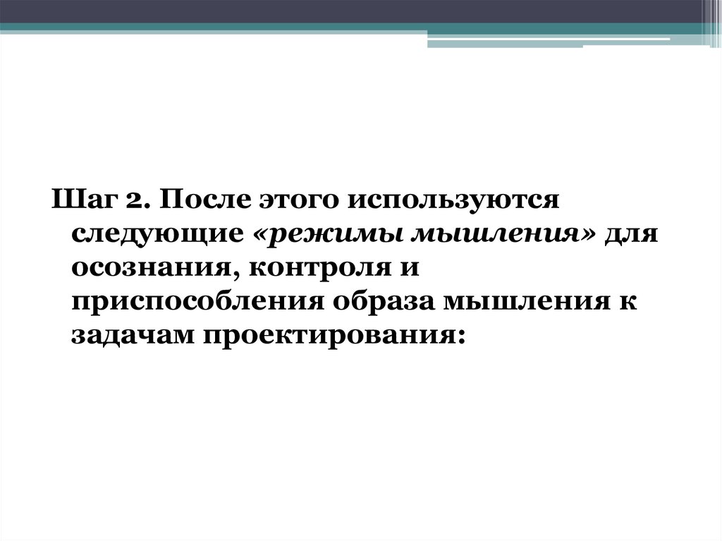 Шаг 2. После этого используютсяследующие «режимы мышления» для