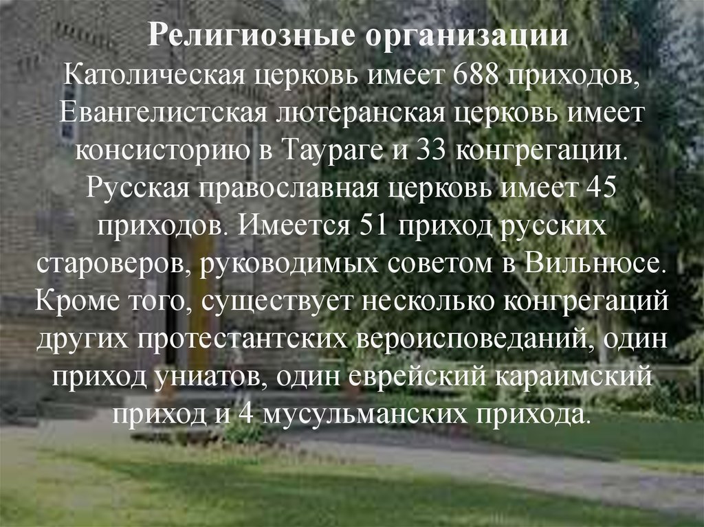 Религиозные организацииКатолическая церковь имеет 688 приходов,