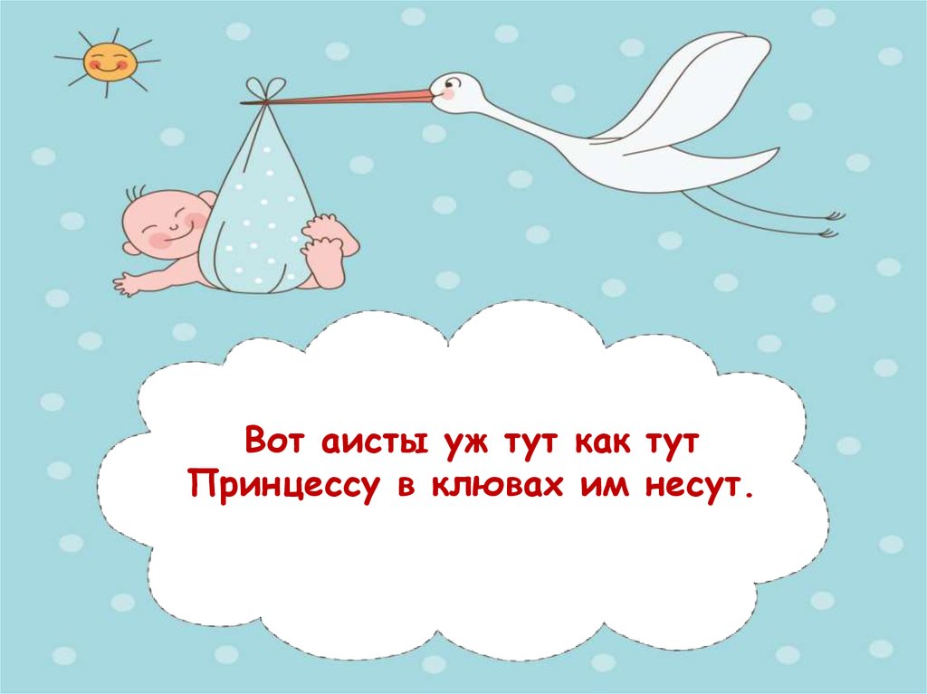 Вот аисты уж тут как тутПринцессу в клювах им несут.