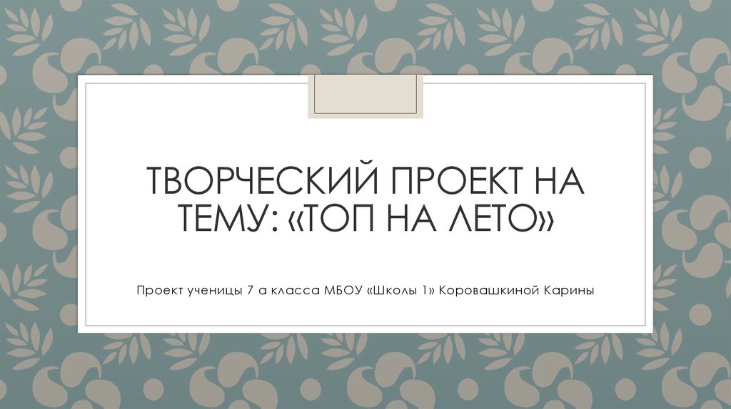 ТВОРЧЕСКИЙ ПРОЕКТ НАТЕМУ: «ТОП НА ЛЕТО»