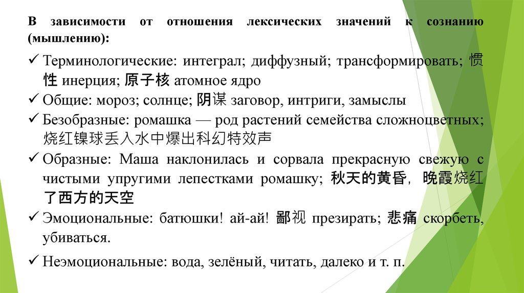 Терминологические: интеграл; диффузный; трансформировать; 惯