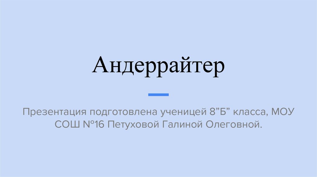 АндеррайтерПрезентация подготовлена ученицей 8”Б” класса, МОУ