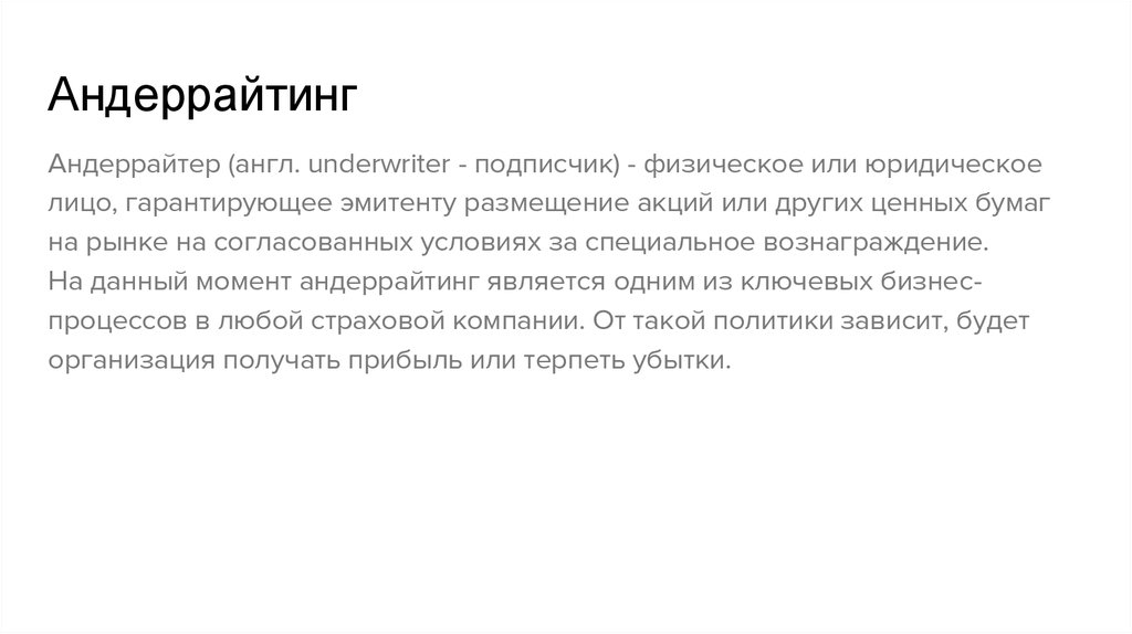 АндеррайтингАндеррайтер (англ. underwriter - подписчик) - физическое или юридическое