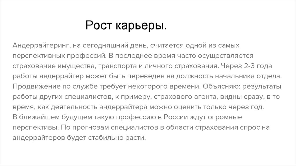 Рост карьеры.Андеррайтеринг, на сегодняшний день, считается одной из самых