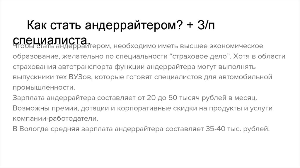 В Вологде средняя зарплата андеррайтера составляет 35-40 тыс. рублей.
