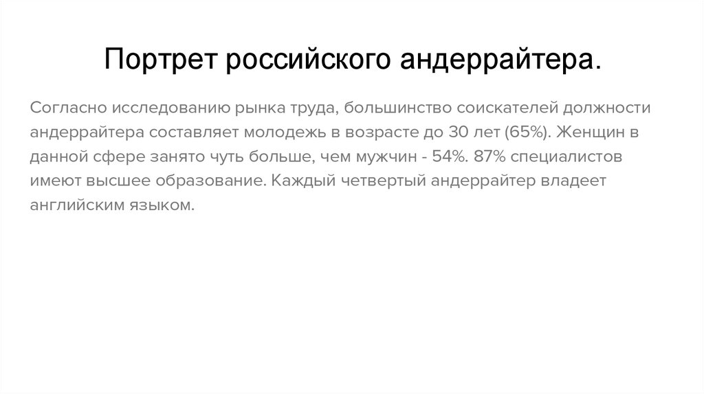 Портрет российского андеррайтера.Согласно исследованию рынка труда, большинство соискателей должности