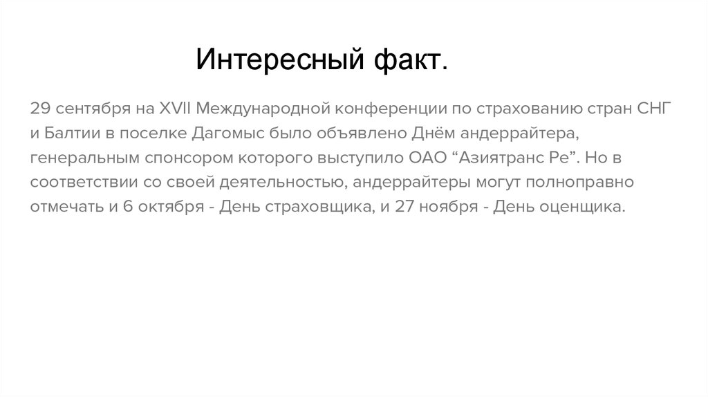 Интересный факт.29 сентября на XVII Международной конференции по страхованию стран СНГ